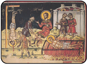 «Νέφος μαρτύρων». Δεν έμεινε βασανιστικός τρόπος και όργανο πού νά μήν χρησιμοποιήθηκαν γιά νά λυγίσουν τούς γενναίους αθλητές της πίστεως. Ξυλοδαρμοί, καυτά λάδια, παγωμένα νερά, καρφιά, λογχισμοί, συντριβή οστών, διαμελισμός μελών τού σώματος. Μαρτυρικοί θάνατοι δι’ αποκεφαλισμού, λιθοβολισμού, πνιγμού, πυρός, κατασπαράξεως από αγριεμένα λιοντάρια καί άλλων φρικτών τρόπων. Παρ’ όλα αύτά τό Δέντρο της πίστεως, πού φύτεψε ό Αρχηγός τών Μαρτύρων, ό Χριστός μας, όχι μόνον δέν ξερριζώθηκε από τήν μανία τού είδωλολατρικού μίσους, αλλά ρίζωσε βαθύτερα.