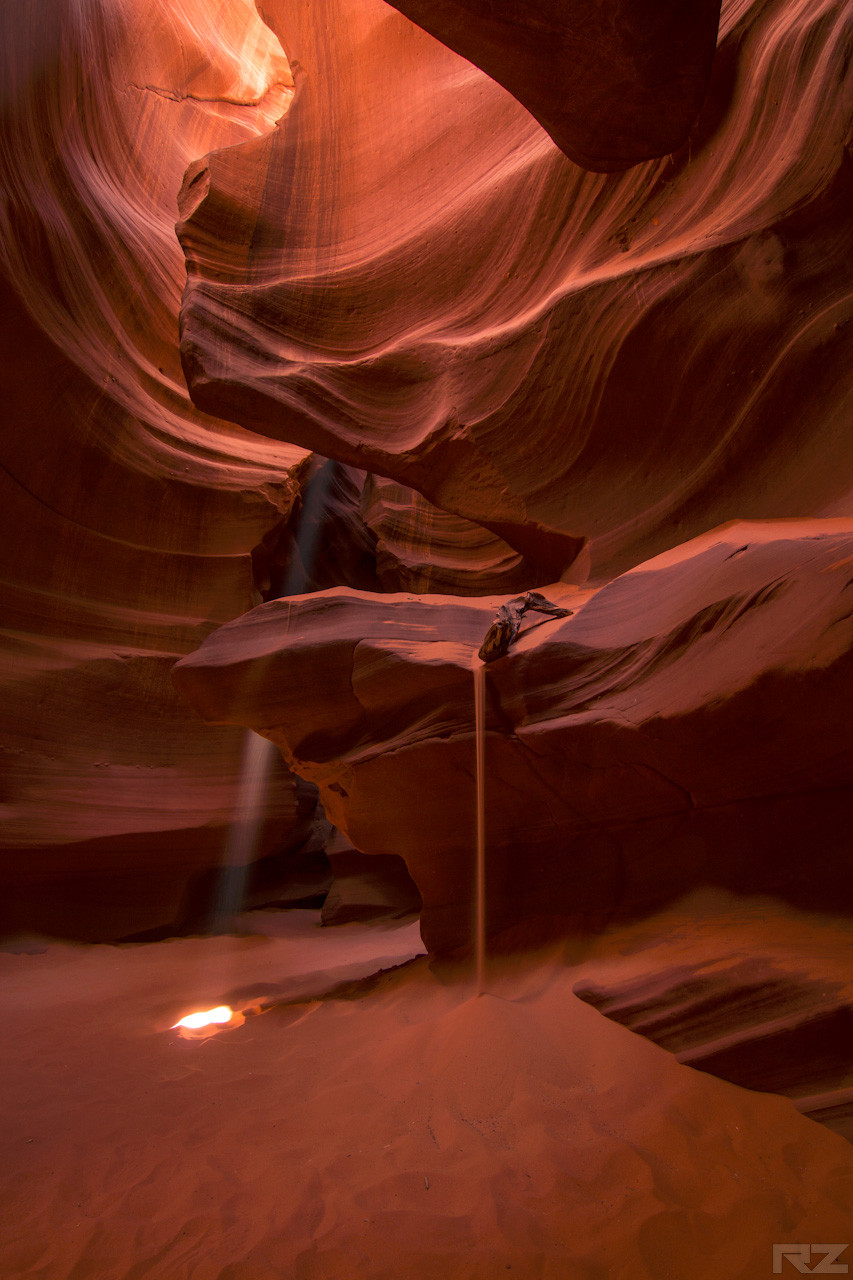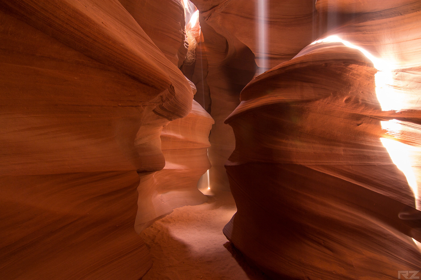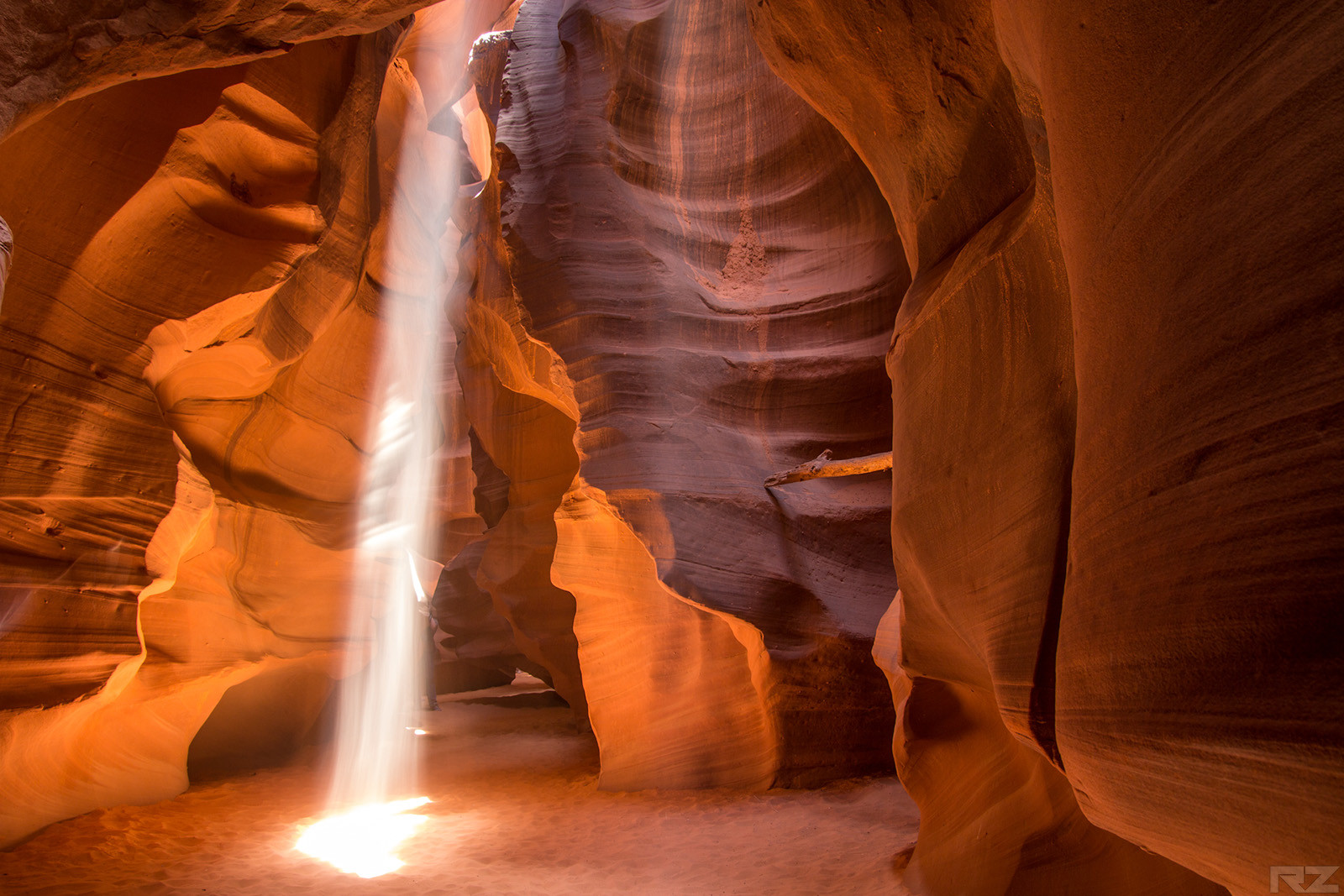 Οι ακτίνες του ηλίου που κατεβαίνουν μέχρι τα βάθη του Φαραγγιού Antelope δημιουργούν ένα μοναδικό αξιοθέατο: