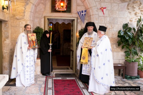 Διαρκούσης τῆς θείας Λειτουργίας, προσῆλθεν ἐκ τοῦ Πατριαρχείου ἡ Α.Θ.Μ. ὁ Πατήρ ἡμῶν καί Πατριάρχης Ἱεροσολύμων κ.κ. Θεόφιλος μετά Συνοδείας Ἁγιοταφιτῶν Πατέρων καί προσκυνητῶν.