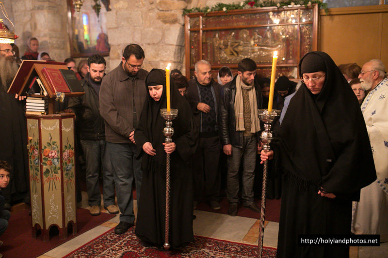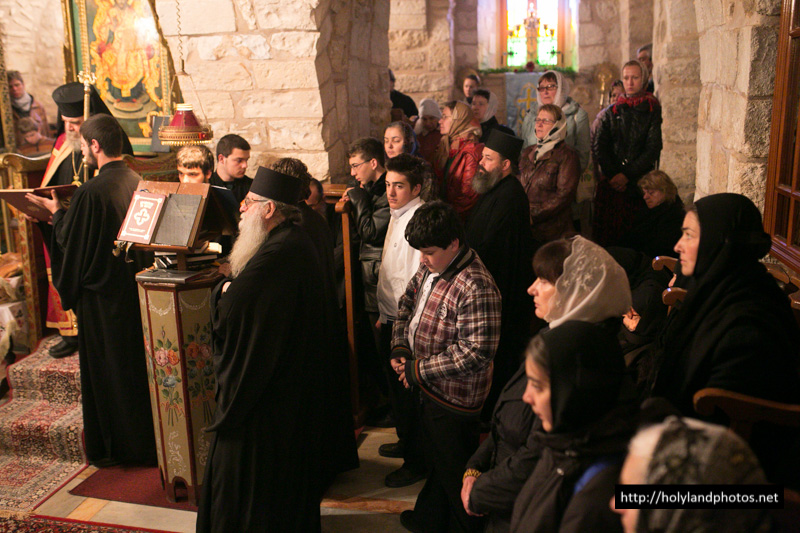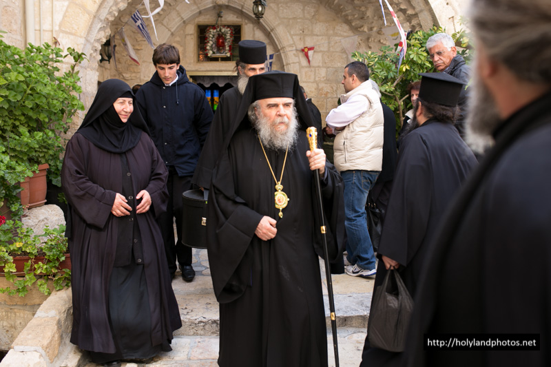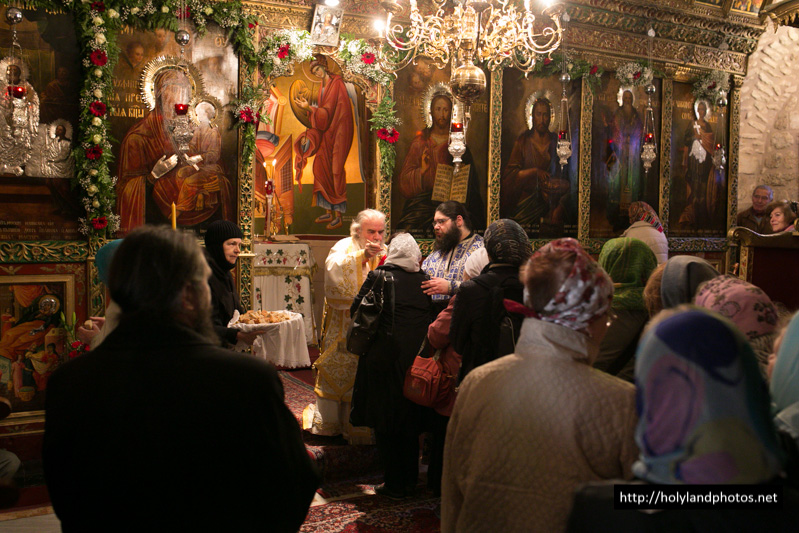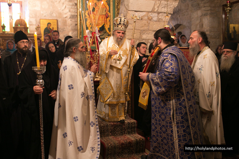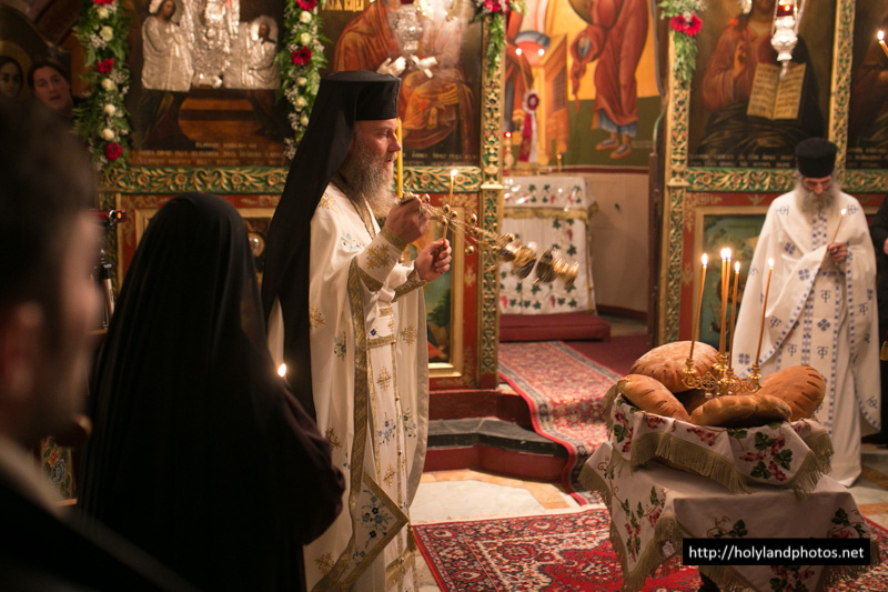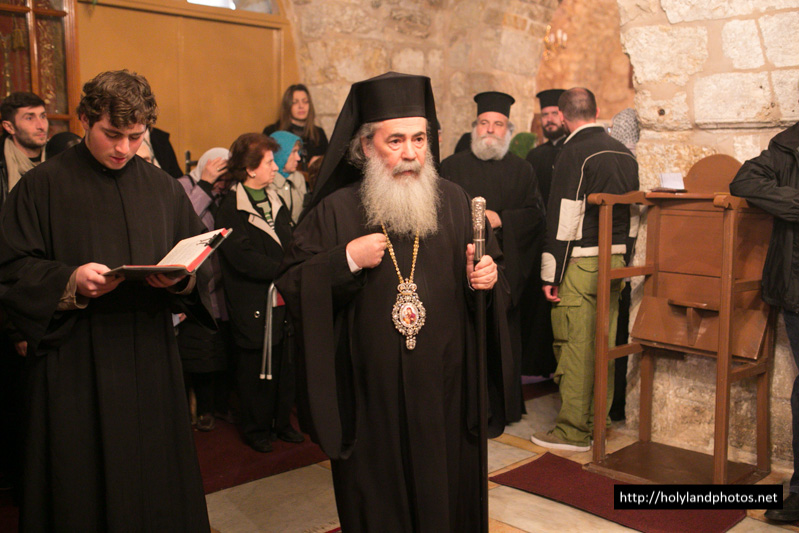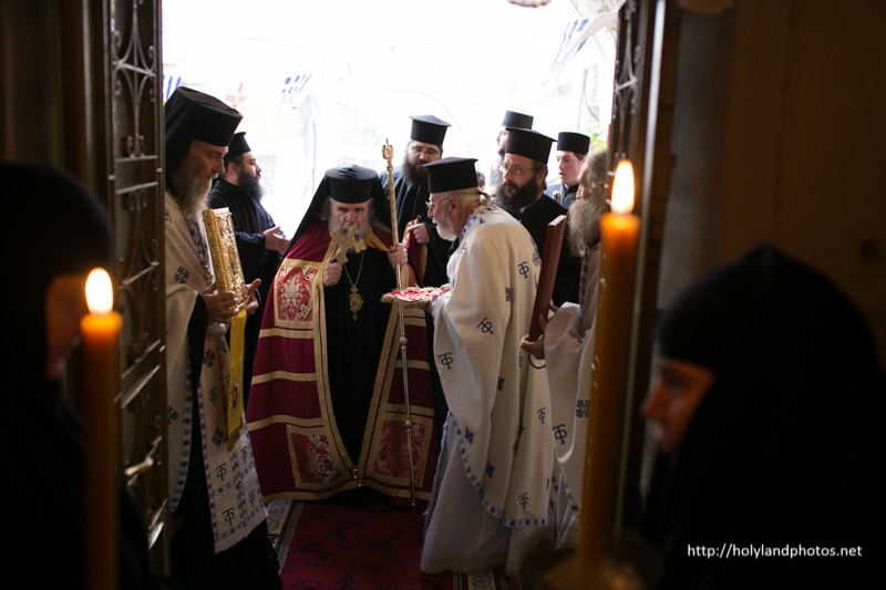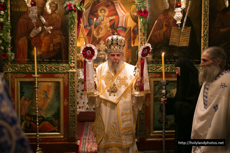 Τοῦ Ἑσπερινοῦ ἀφ’ ἑσπέρας καί τοῦ Ὄρθρου καί τῆς Θείας Λειτουργίας ἀνήμερα τῆς ἑορτῆς προεξῆρξεν ὁ Γέρων Ἀρχιγραμματεύς Σεβασμιώτατος Ἀρχιεπίσκοπος Κωνσταντίνης κ. Ἀρίσταρχος, συλλειτουργούντων αὐτῷ τοῦ Ἀρχιμανδρίτου Ἰγνατίου, ἡγουμένου τῆς Μονῆς τῶν Ποιμένων ἐν τῇ κώμῃ τῶν Ποιμένων, τοῦ ἡγουμένου τῆς Μονῆς τοῦ Προφήτου Ἠλιοῦ Ἱερομονάχου Παϊσίου, τοῦ Ἀρχιμανδρίτου Ἀποστόλου, παρεπιδημοῦντος ἐκ τῆς Μητροπόλεως Πέτρας Χερρονήσου τῆς Ἐκκλησίας τῆς Κρήτης, τοῦ π. Ἀΐσσα Τοῦμα, Προϊσταμένου τοῦ Καθεδρικοῦ Ἱεροῦ Ναοῦ τοῦ Ἁγίου Ἰακώβου τοῦ Ἀδελφοθέου, τοῦ Ἱεροδιακόνου Θαδδαίου, ψάλλοντος τοῦ Πρωτοψάλτου τοῦ Ναοῦ τῆς Ἀναστάσεως Ἀρχιμανδρίτου π. Ἀριστοβούλου, διευθύνοντος χορῳδίαν ἐκ τῶν ἱεροσπουδαστῶν τῆς Πατριαρχικῆς Σχολῆς ἑλληνιστί, ρωσιστί καί ρουμανιστί, τῆς χορῳδίας δέ τοῦ Καθεδρικοῦ Ναοῦ τοῦ Ἁγίου Ἰακώβου τοῦ Ἀδελφοθέου ἀραβιστί ὑπό τόν κ. Ριμόν Κάμαρ καί συμπροσευχομένου πυκνοῦ ἐκκλησιάσματος ἐξ Ἑλλήνων τῆς Παροικίας τῶν Ἱεροσολύμων, ἀραβοφώνων (Rum Orthodox), ρωσσοφώνων καί ρουμανοφώνων.