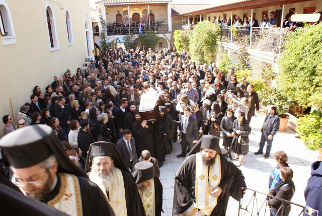 Πλειάδα κληρικών και πλήθος συμπολιτών μας παρέστη στην Εξόδιο Ακολουθία, κατακλύζοντας κυριολεκτικά το Καθολικό της Μονής και τον αύλειο χώρο.