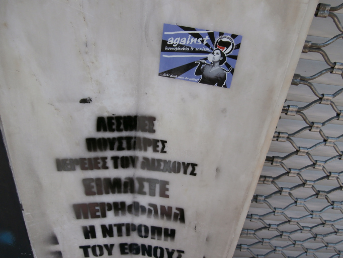 Ντροπή και αίσχος. Οι υποστηρικτές και οι συμμετέχοντες στο Athens Gay Pride, που προλόγισε θερμά ο Δήμαρχος Αθηναίων Γ. Καμίνης, βεβήλωσαν το άγαλμα του Κολοκοτρώνη στην ομώνυμη πλατεία του κέντρου της πρωτεύουσας γράφοντας αισχρά συνθήματα.«Λεσβίες, πουστάρες, ιέρειες του αίσχους είμαστε περήφανα η
