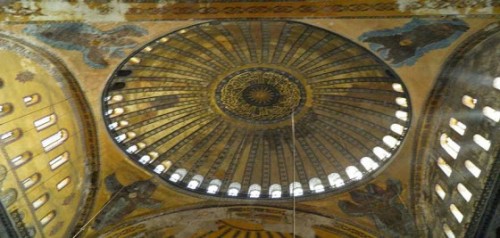 της εσωτερικής τοιχοποιίας από τον κεντρικό θόλο της Αγίας Σοφίας μετά